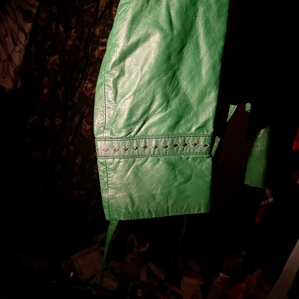 【70s-80s】short design leather jacket /green